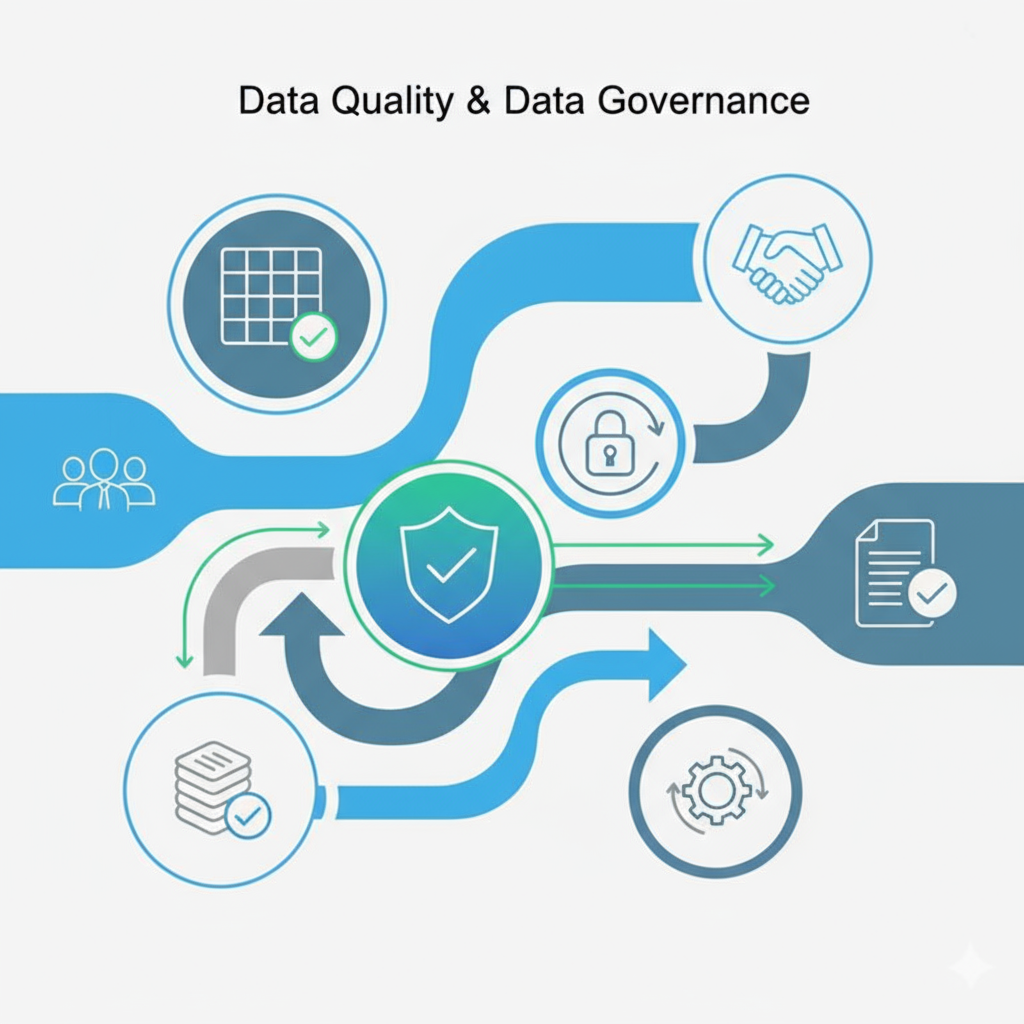 في شركة قائد الجودة (QAED)، نساعد المؤسسات على إرساء أطر عمل فعّالة لحوكمة البيانات، وتحسين جودة البيانات لضمان دقتها واتساقها وامتثالها للمعايير. تُمكّن حلولنا الشركات من بناء أصول بيانات موثوقة، وتعزيز ثقة اتخاذ القرارات، وتلبية المتطلبات التنظيمية، مع تعزيز ثقافة قائمة على البيانات.